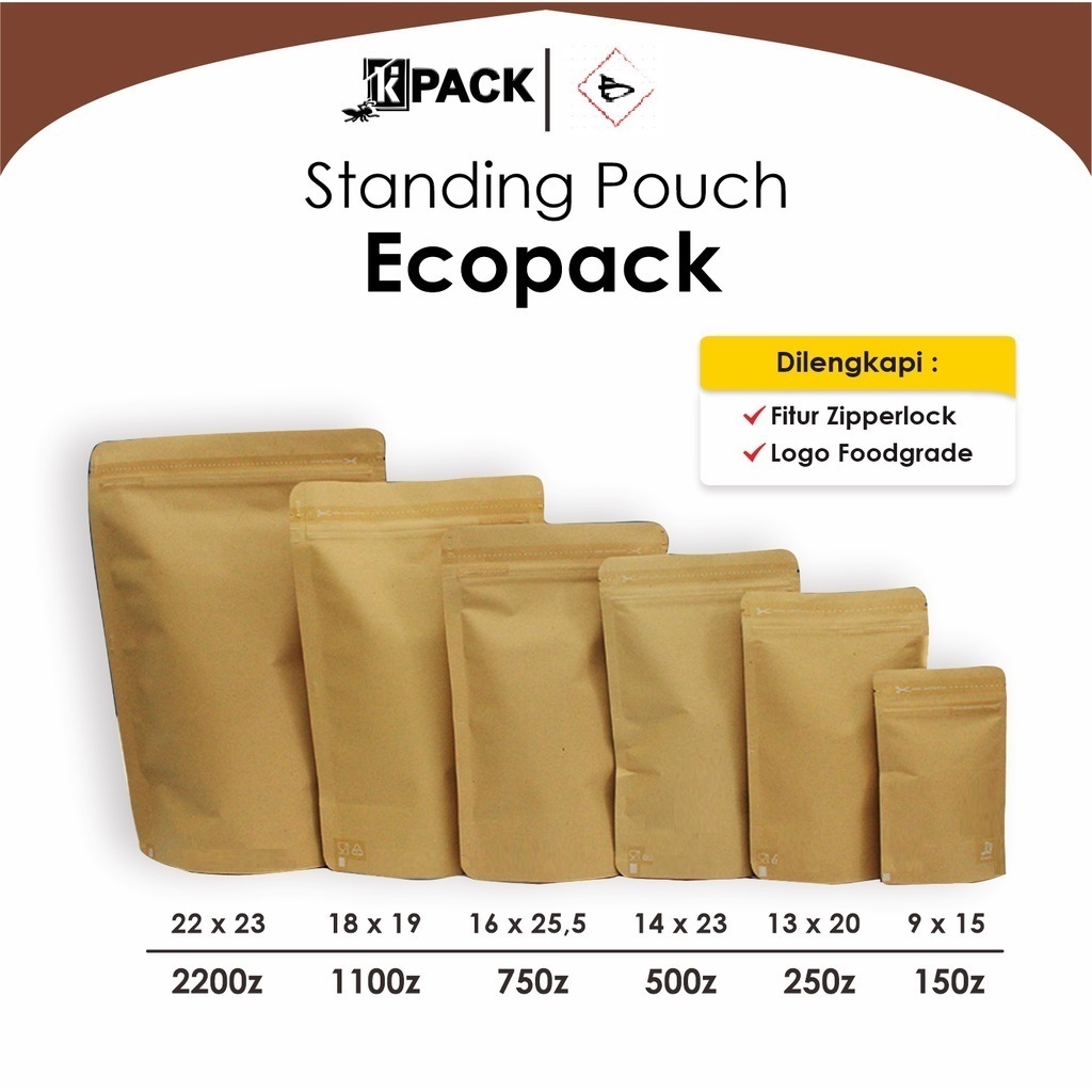 (100 Pcs) Kemasan Standing Pouch Packing Kraft Paper Metalized 150 250 500 750 1100 2200 G KPACK