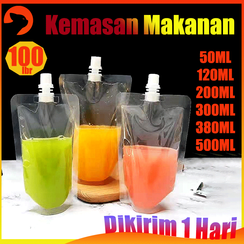 100PCS Standing Pouch Kemasan Minuman Spout Pack Mika 50ML/120ML/200ML/500ML
