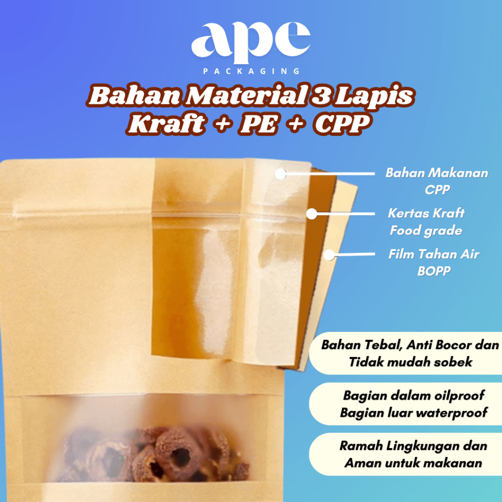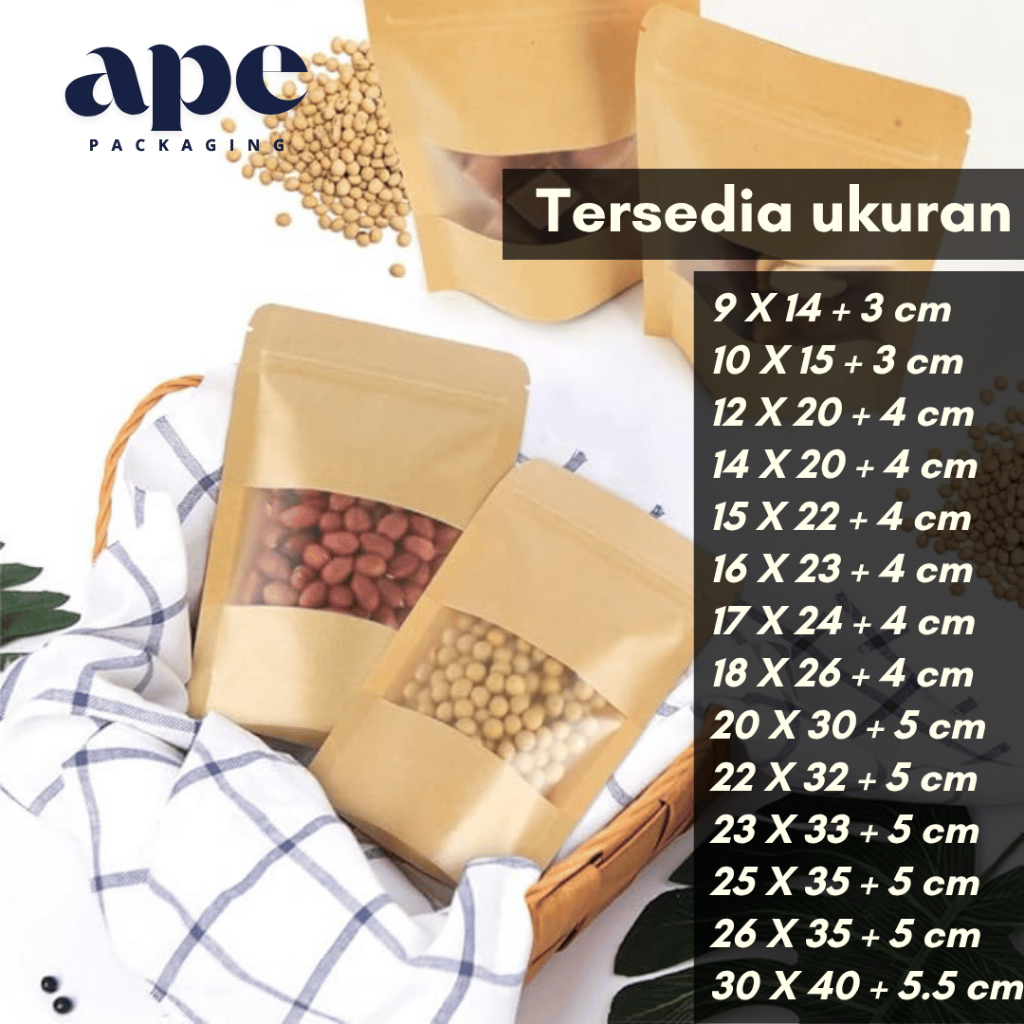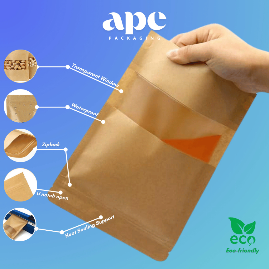 50 pcs Standing Pouch Ziplock Kraft Brown Paper Window Serbaguna Eco Waterproof