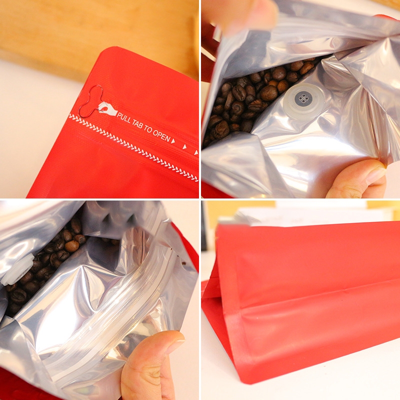 50PCS Coffee Bag Standing Pouch Kemasan Kopi Ziplock Flat Bottom Valve Makanan Plastik Klip Zipper Bag