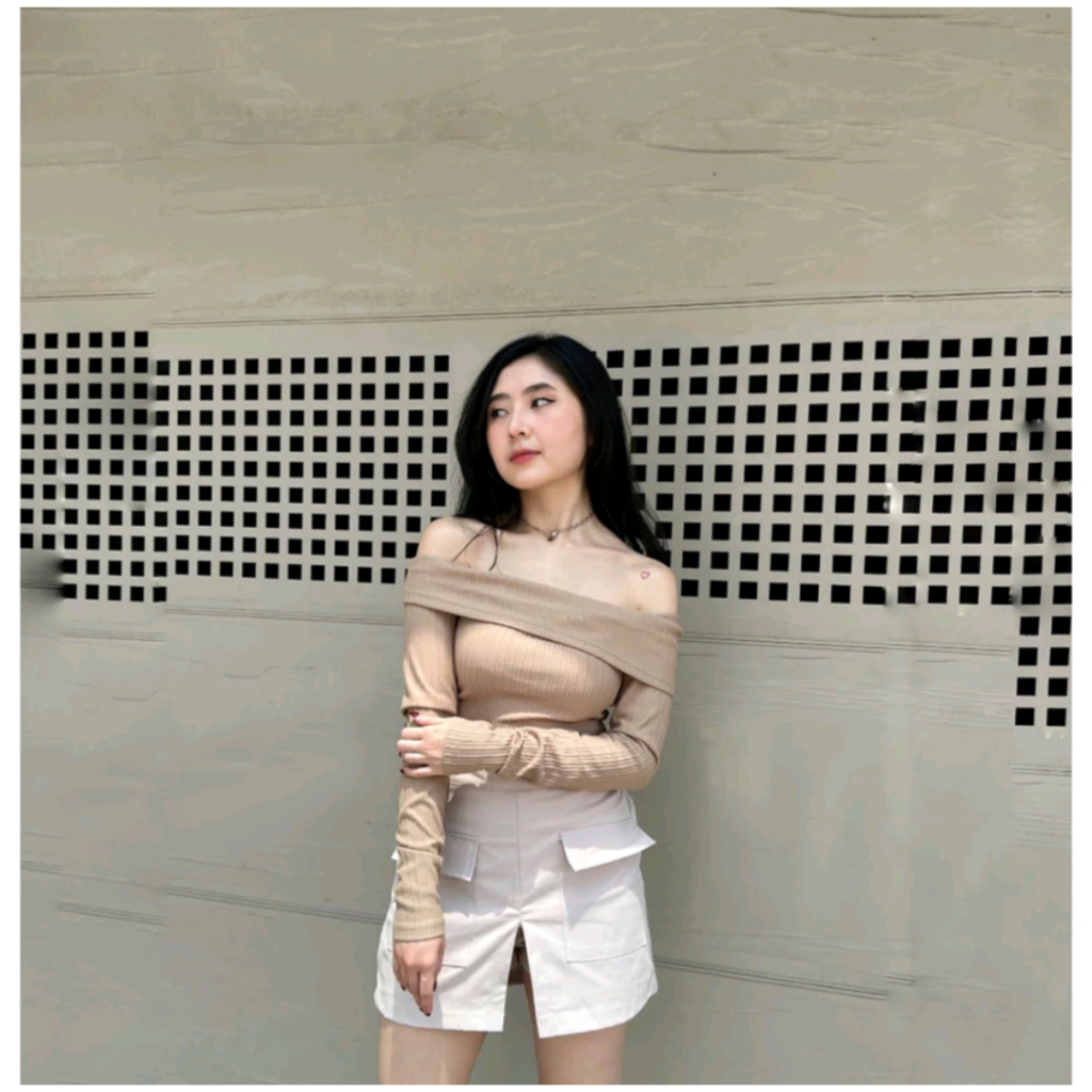 Sabrina Rib Top | Baju Atasan Wanita Terbaru Crop Top Lengan Panjang - Baju Wanita Kekinian - Outfit Wanita Kekinian - B