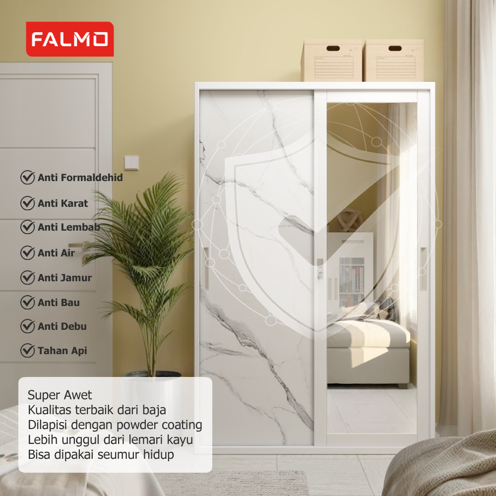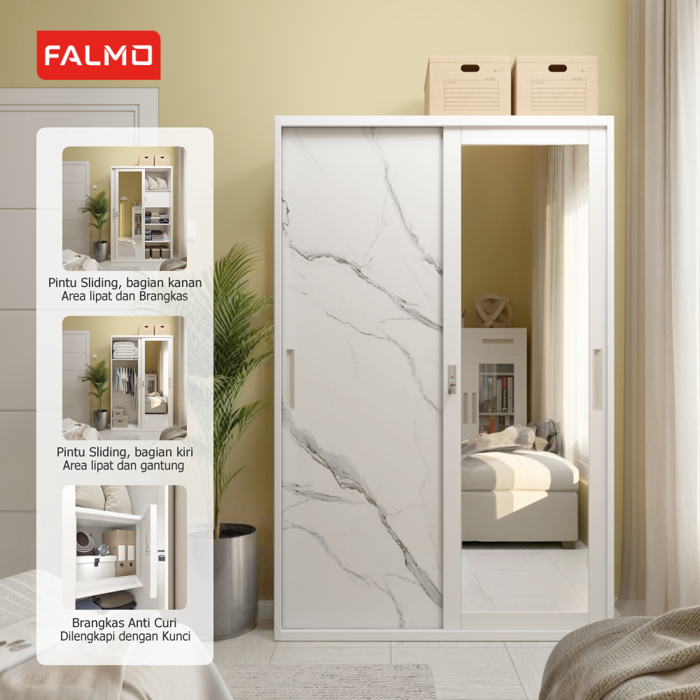 FALMO Lemari Pakaian 2 Pintu/ 120cm 1 gantungan Lemari Kaca Baju Minimalis Pintu Sliding Full Motif