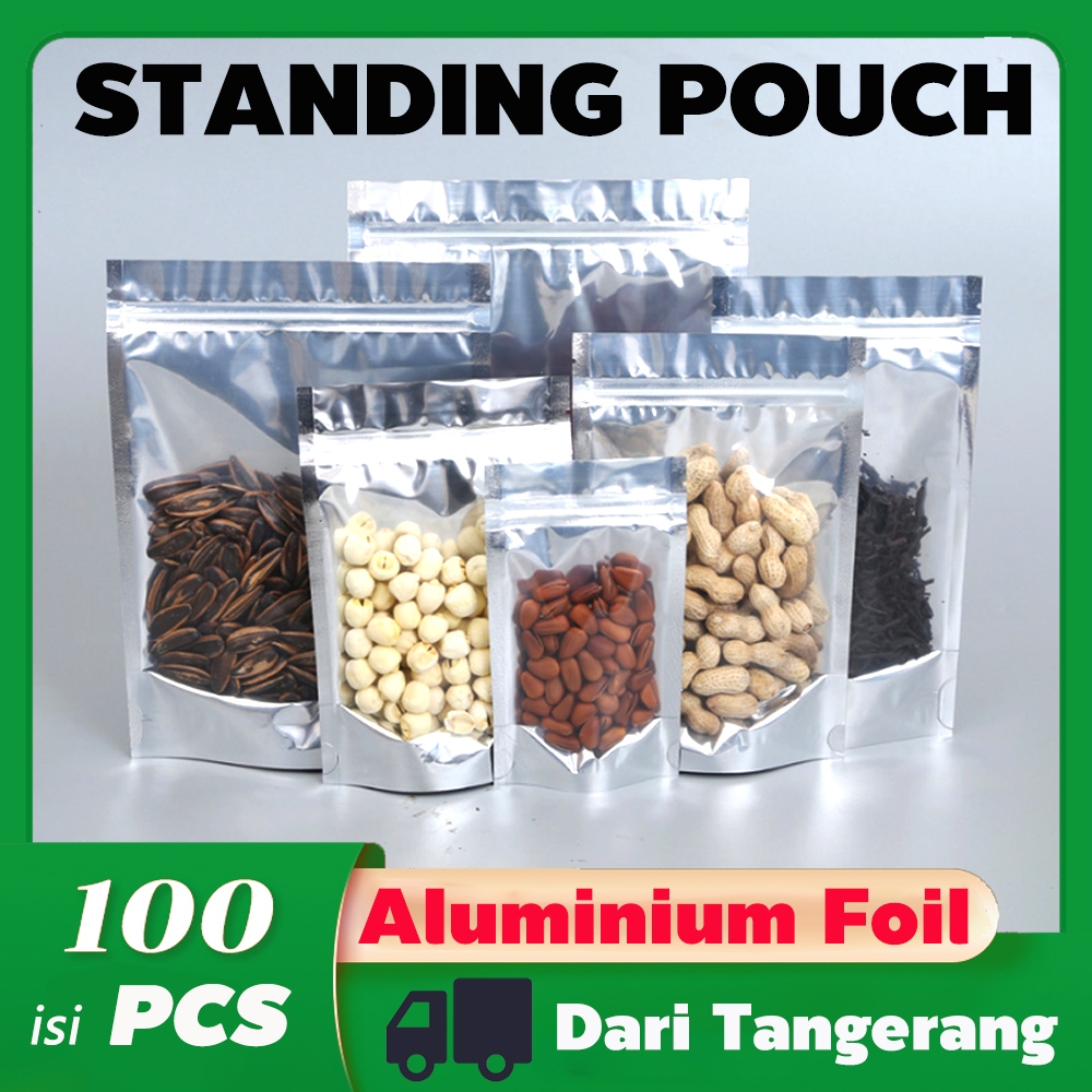 [Ready]100PCS Standing Pouch Alumunium Foil Plastik Klip Ziplock Makanan Snack Packing Bening Transparan Kantong Ziplock
