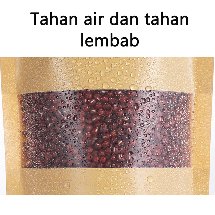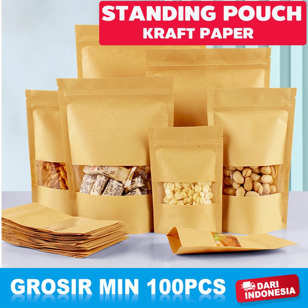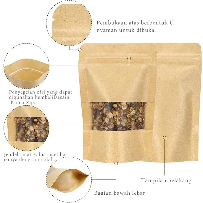 Standing Pouch Kraft Paper Window Zipper Food Storage Ziplock Plastic Klip Kemasan Snack Kacang 100PCS 20x30cm Untuk kem