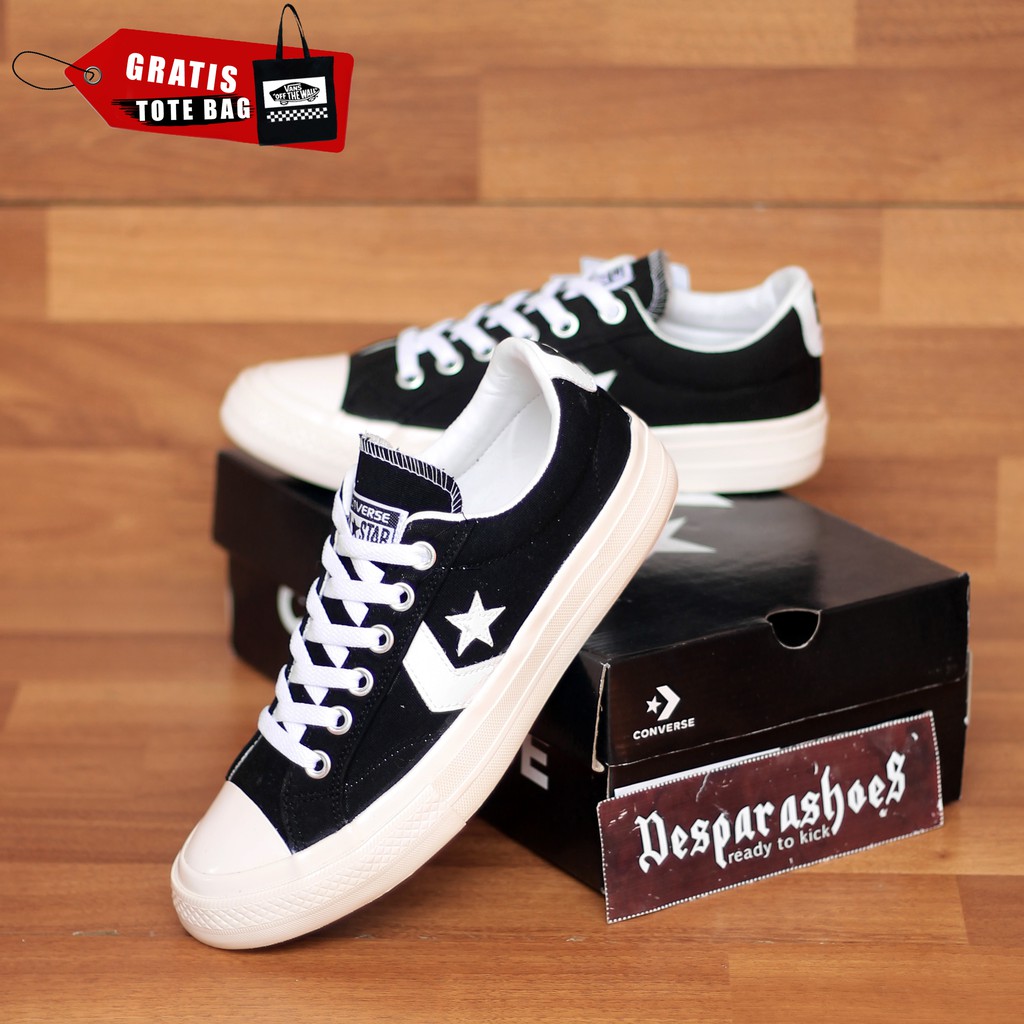 Sepatu Pria Sneakers Converse Cons One Star Player Black White Import Premium