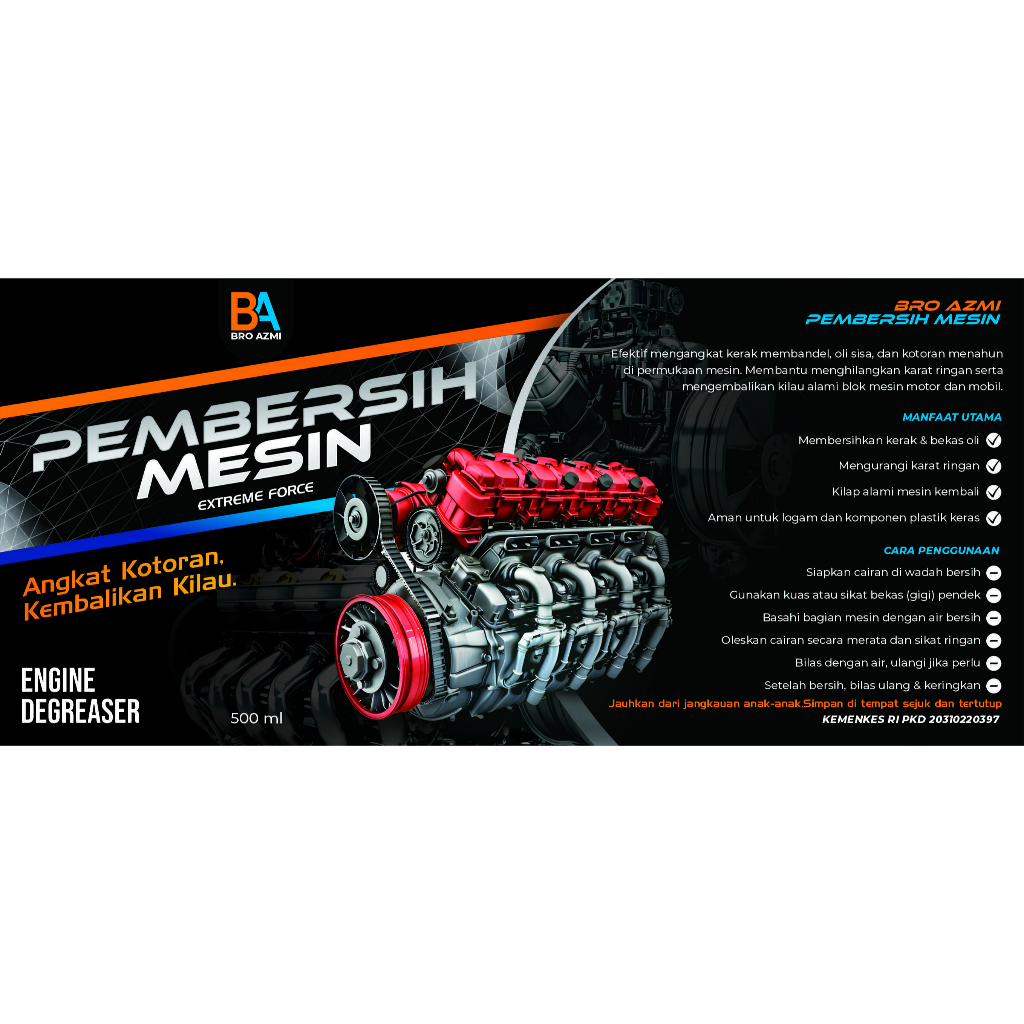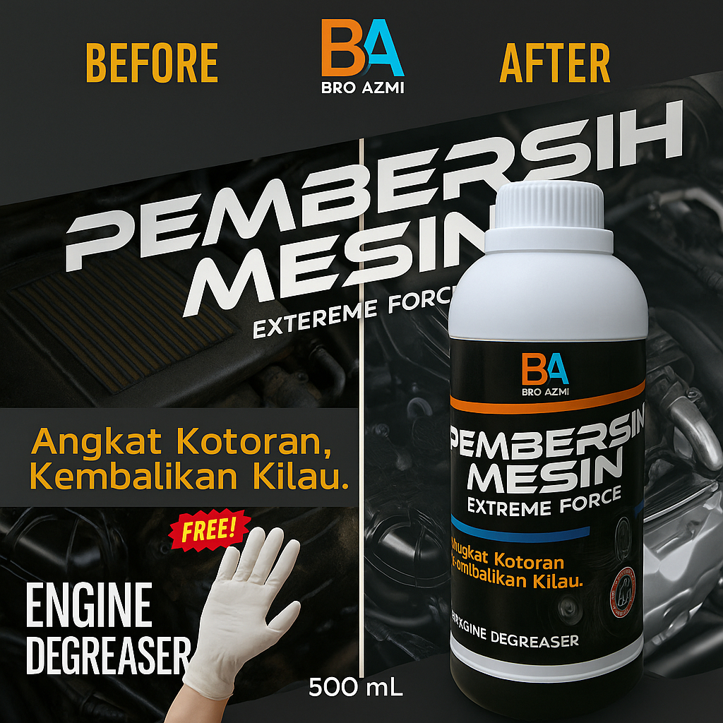 Pembersih Mesin Kerak Motor & Mobil | Extreme Force Engine Degreaser 500ml Bonus Gloves - BA