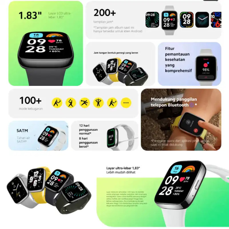 100 PERSEN original Xiaomi Redmi Watch 3 Active 1.83 Inch Amoled | Tahan Air 5ATM