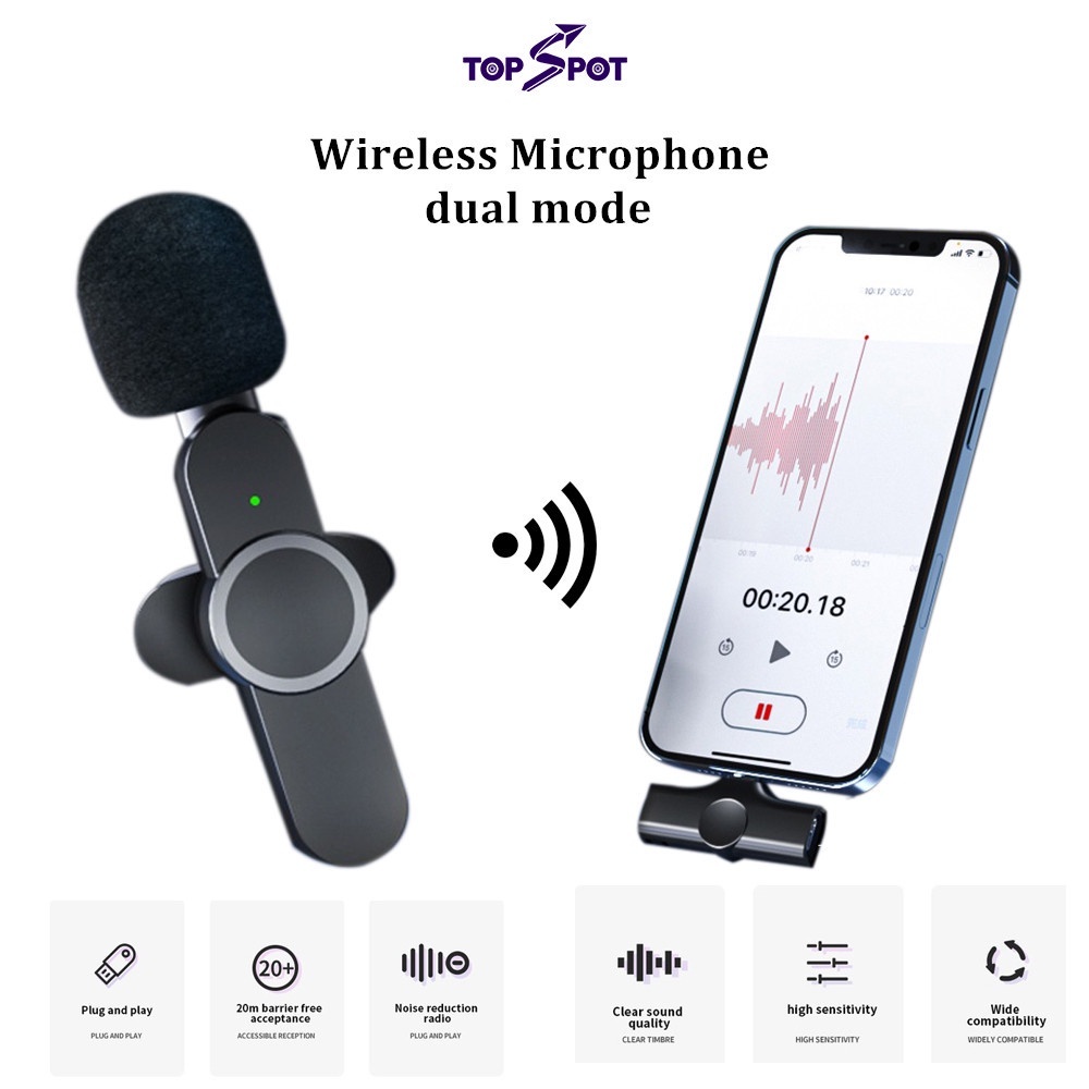 Mikrofon Wireless 2 In 1 Type C Clip On Lavalier HP Plug & Play Suara Jernih Anti Noise