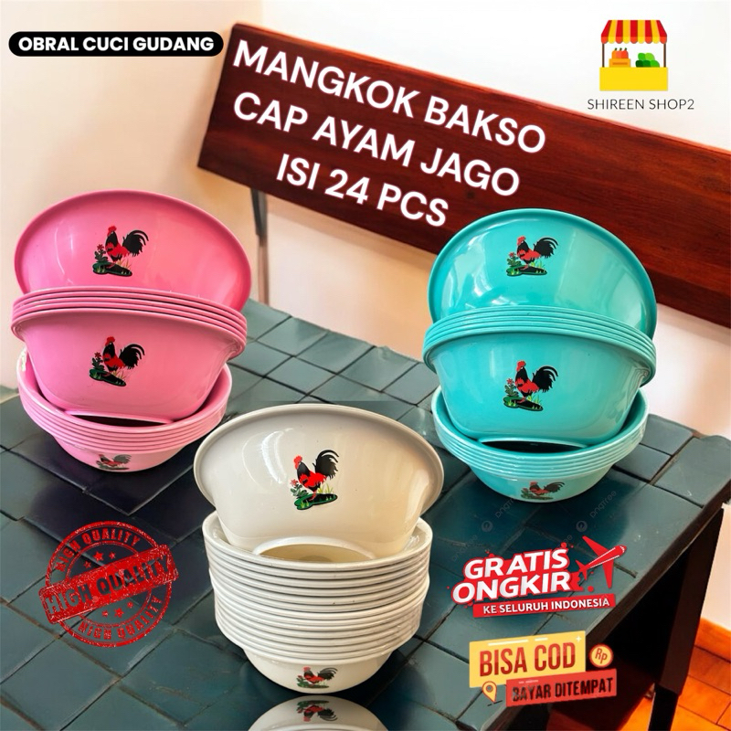 PROMO 24 BIJI MANGKOK PLASTIK AYAM JAGO MURAH langsung pabrik MANGKOK BAKSO MI AYAM TEBAL ANTI PECAH Murah Gratis Ongkir