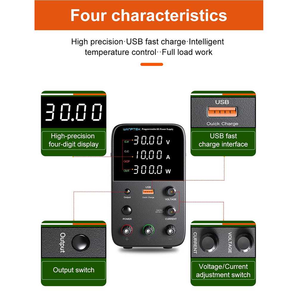 Power Supply DC Adjustable 30V 10A Catu Daya Listrik Wanptek WPS3010H