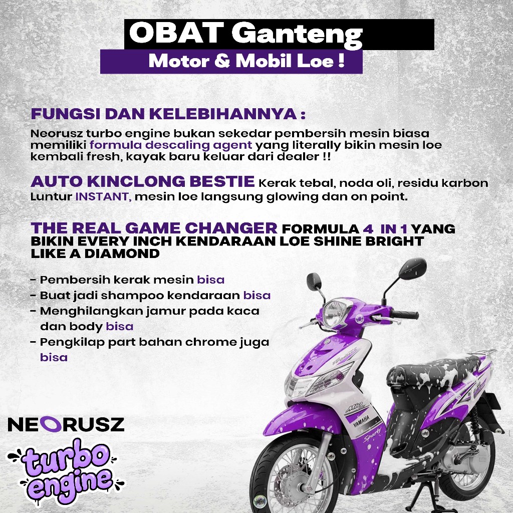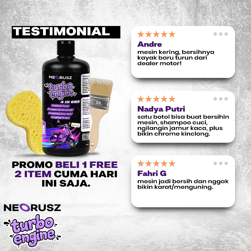 Neorusz Turbo Engine - Pembersih Kerak Mesin - Penghilang Jamur Kaca - Pengkilap Chrome - Sabun Cuci Mobil & Motor 4 in