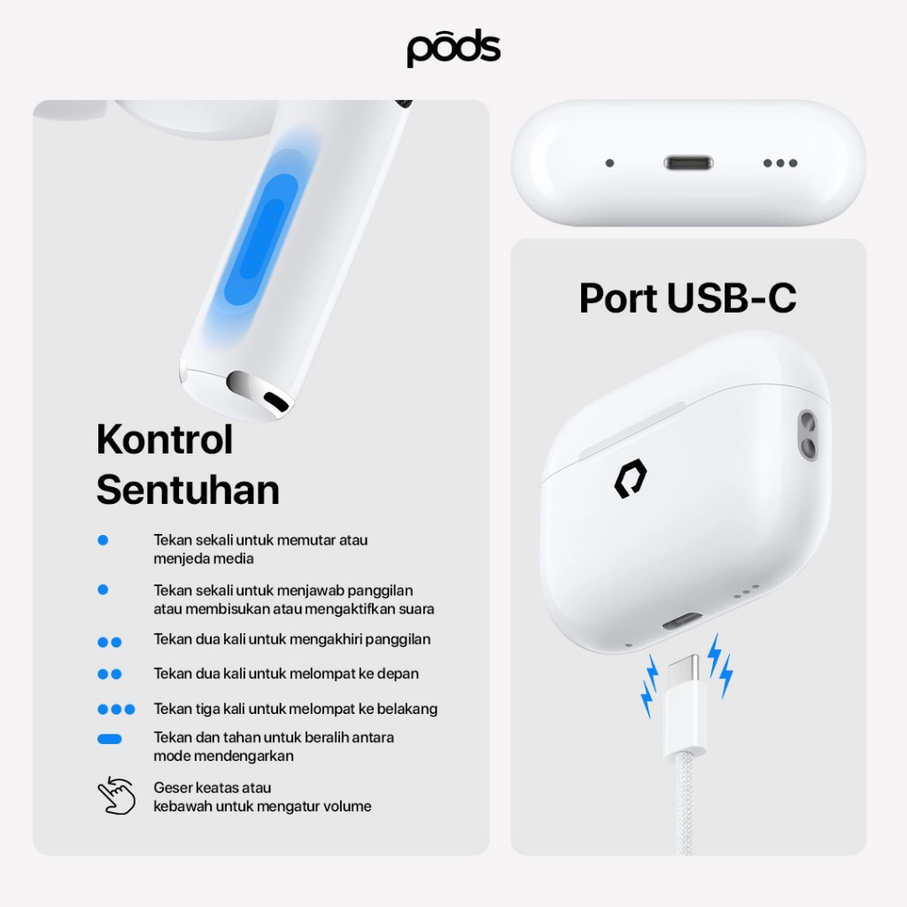 ThePods Pro 2 Generation TWS Bluetooth – H2 Chip, Wireless Charging, IMEI Terdaftar, 9D Hifi Stereo by Pods Indonesia
