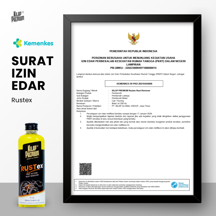Rustex | Kilap Premium - Rust Remover, Pembersih Karat Motor Mobil, Penghilang Karat Logam, Pembersih Karat Mesin