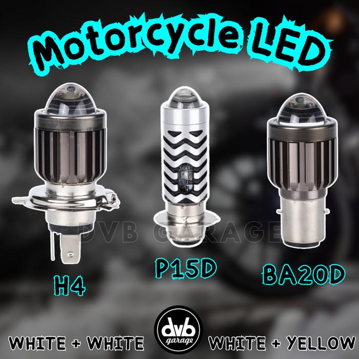 MEGA SALE LAMPU LED MOTOR LASER HI-LO DUAL LIGHT WHITE YELLOW PUTIH KUNING H4 H6 P15D BA20D - P15D, PUTIH + PUTIH BEST