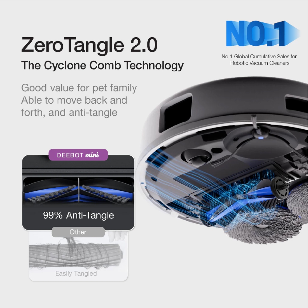 ECOVACS DEEBOT MINI Robot Vacuum Cleaner Compact But Powerful | LDS LiDAR & Line Laser | ZeroTangle 2.0 Anti-Tangle Tech