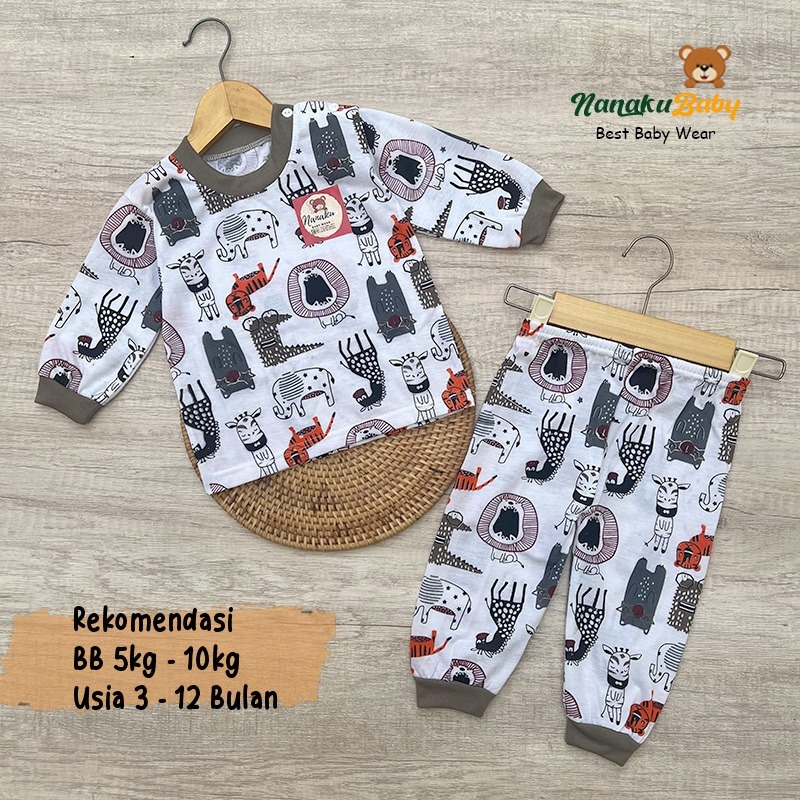 Setelan Baju Bayi Piyama Bayi Lengan Panjang Kancing Pundak Motif Jungle Land Usia 3-12 Bulan Anababy