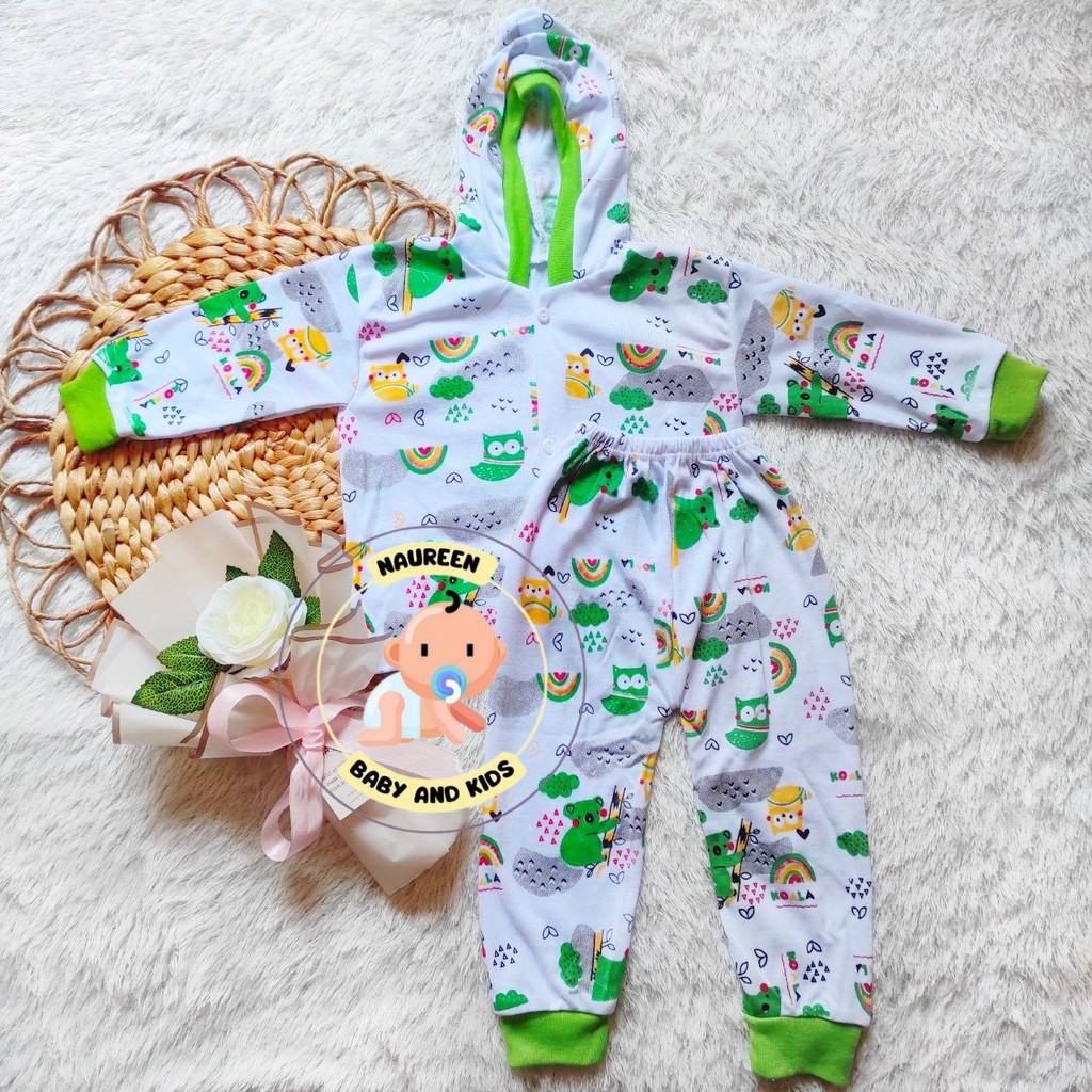 Setelan Baju Bayi Piyama Bayi Lengan Panjang Kancing Depan Setelan Cindung Bear Usia 3-12 Bulan haibunda