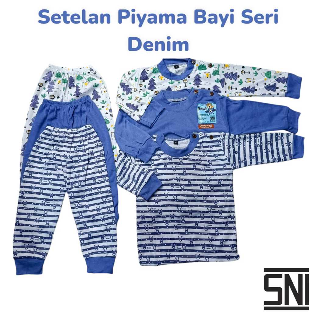Denzie-Paket 3 Set Baju Piyama Bayi Setelan Panjang Usia 3-24 Bulan Unisex Baju tidur laki perempuan