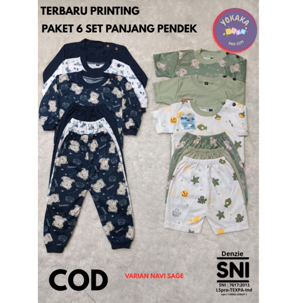 PIYAMA BAYI 6 SET PANJANG PENDEK USIA 3 SAMPAI 12 BULAN (PRINTING)
