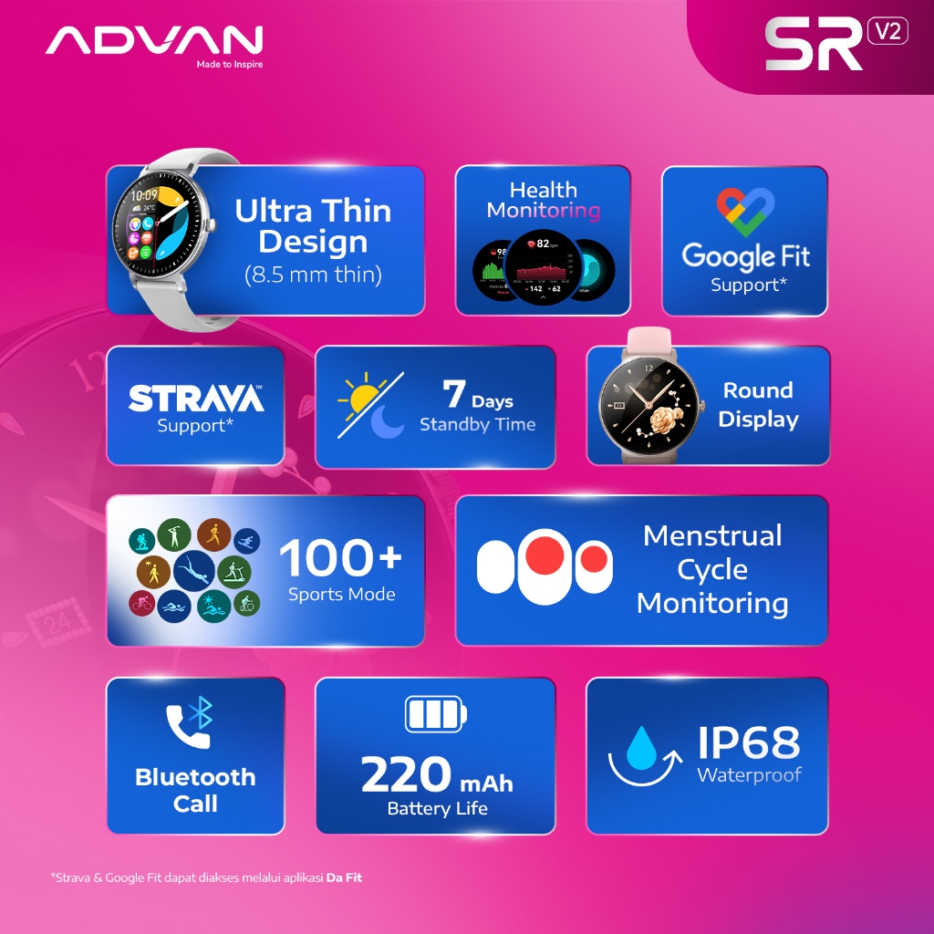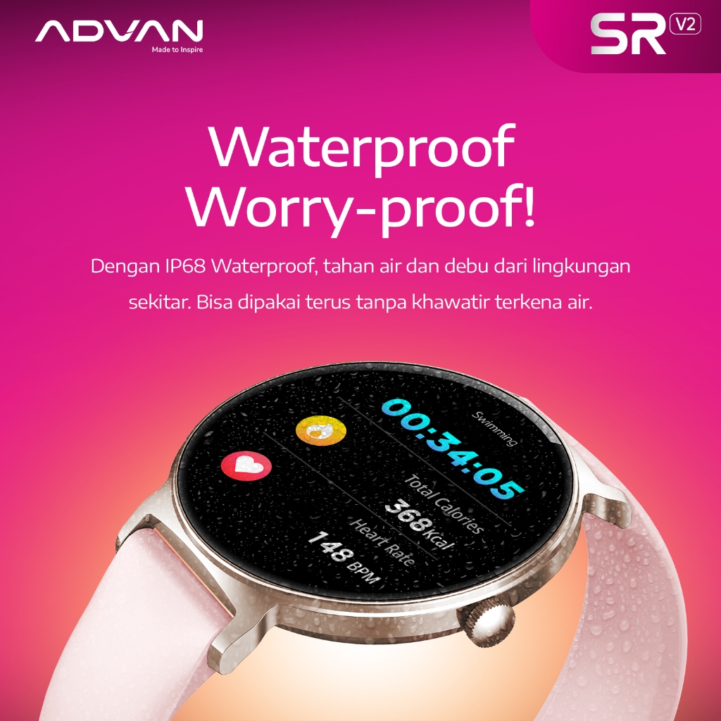 ADVAN Smartwatch SR V2 | AI Voice Assistant | Wireless Bluetooth Call | IP68 Waterproof | Ultra Thin Body