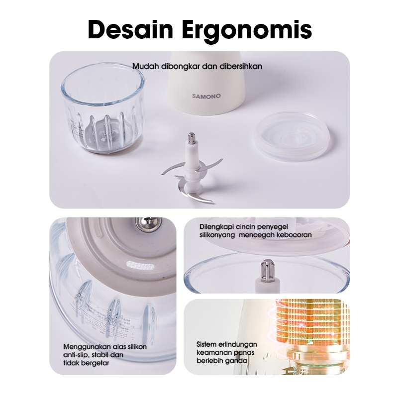 Blender Chopper Elektrik Kapasitas 300ml Wadah Kaca 200 Watt jus set portable kaca turbo mini miyako cosmos