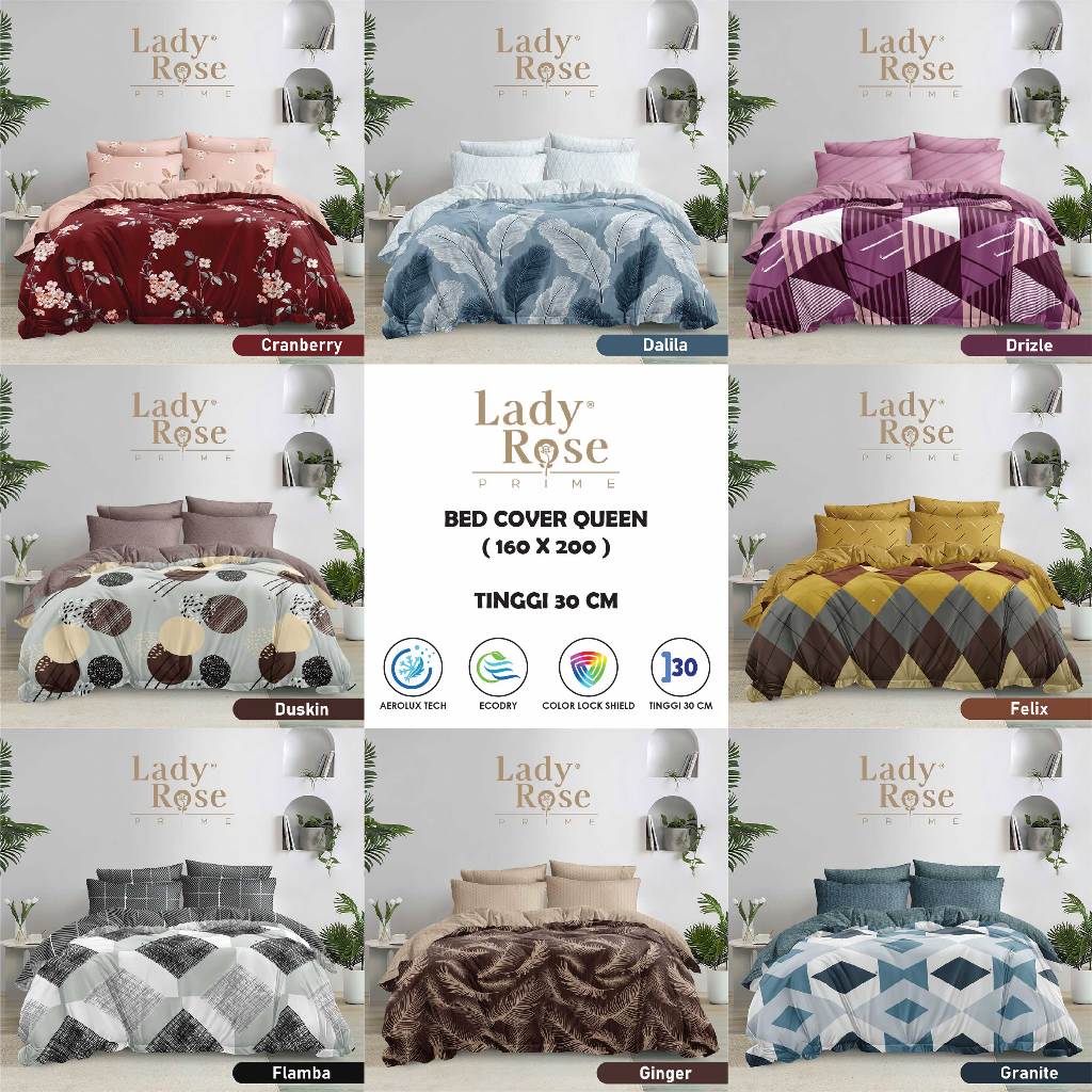 Lady Rose Prime - Bed Cover Set Queen 160x200 Tinggi 30Cm Fitted