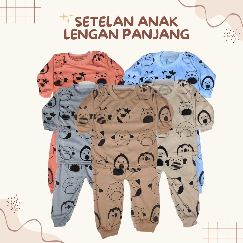 setelan piyama anak CUTE setelan baju bayi oblong lengan panjang usia 3-15 bulan