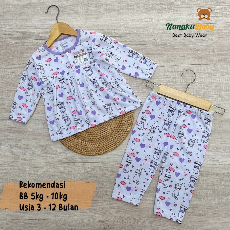 Nanaku Baby - Setelan Piyama Bayi Perempuan Lengan Panjang Variasi Kucing Cantik Usia 3-12Bulan