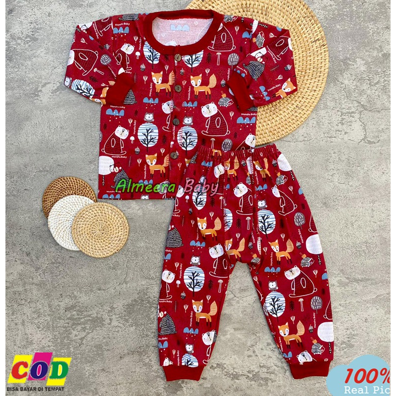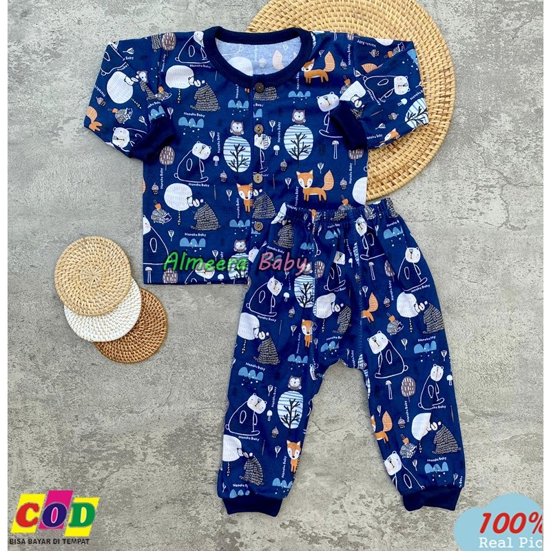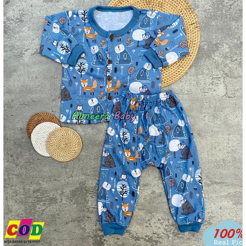 Setelan Baju Bayi Piyama Bayi Lengan Panjang Kancing Depan Motif Printing Burung Hantu Usia 3-12 Bulan Almeera Baby and