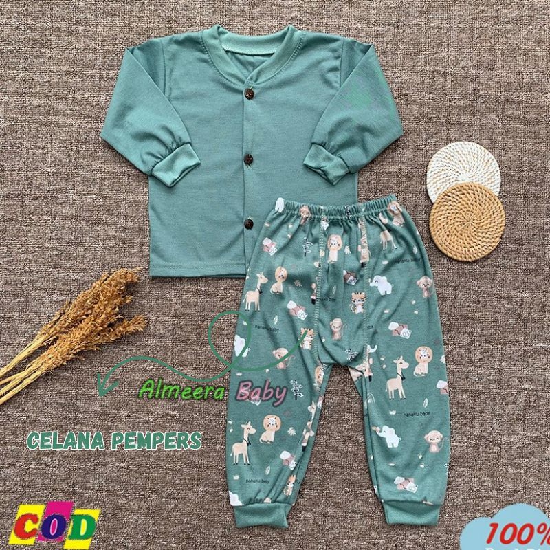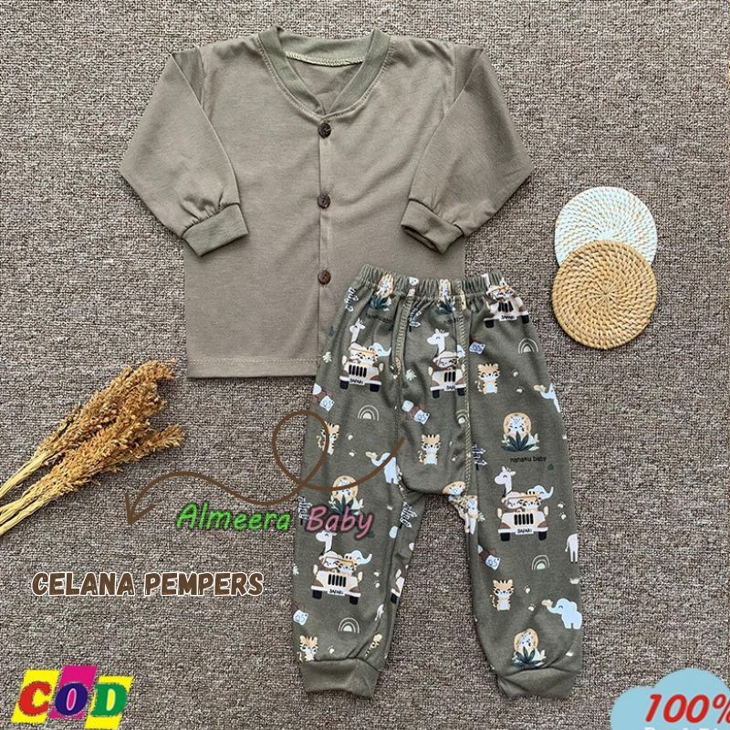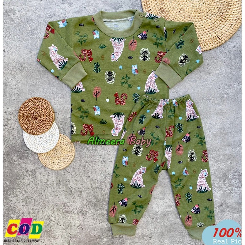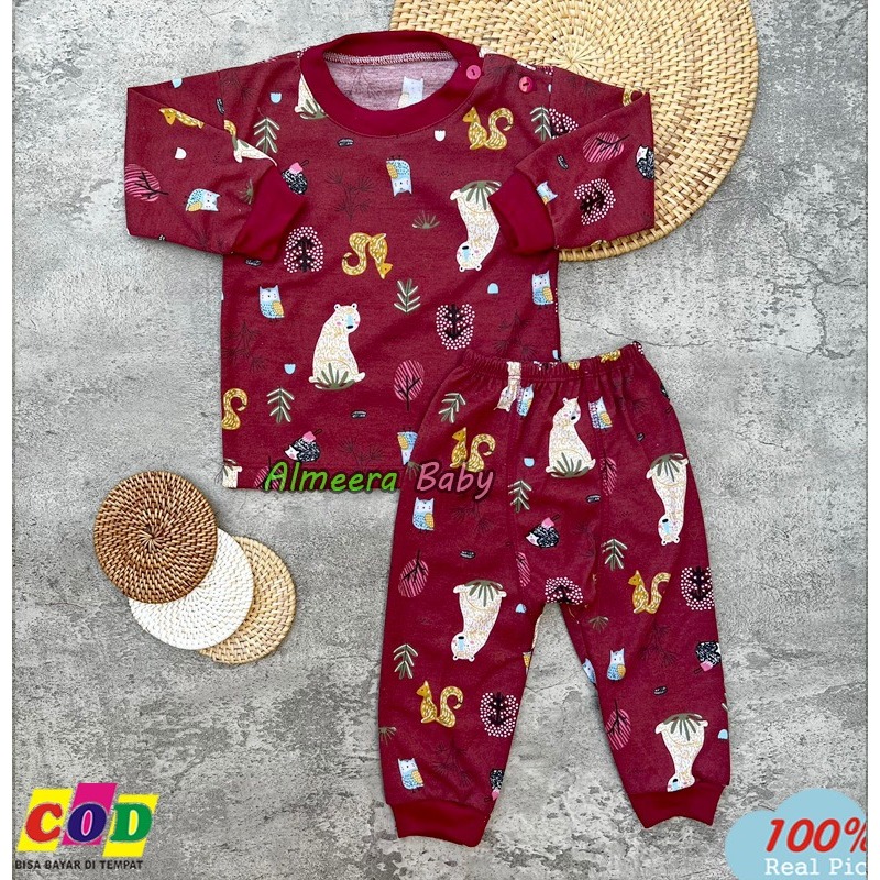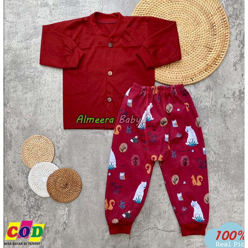 Setelan Baju Bayi Piyama Bayi Kancing Depan Baju Polos Celana Motif Printing Tupai Usia 3-12 Bulan Almeera Baby and Kids