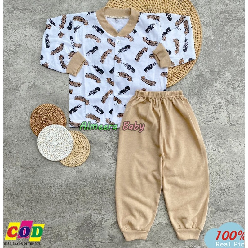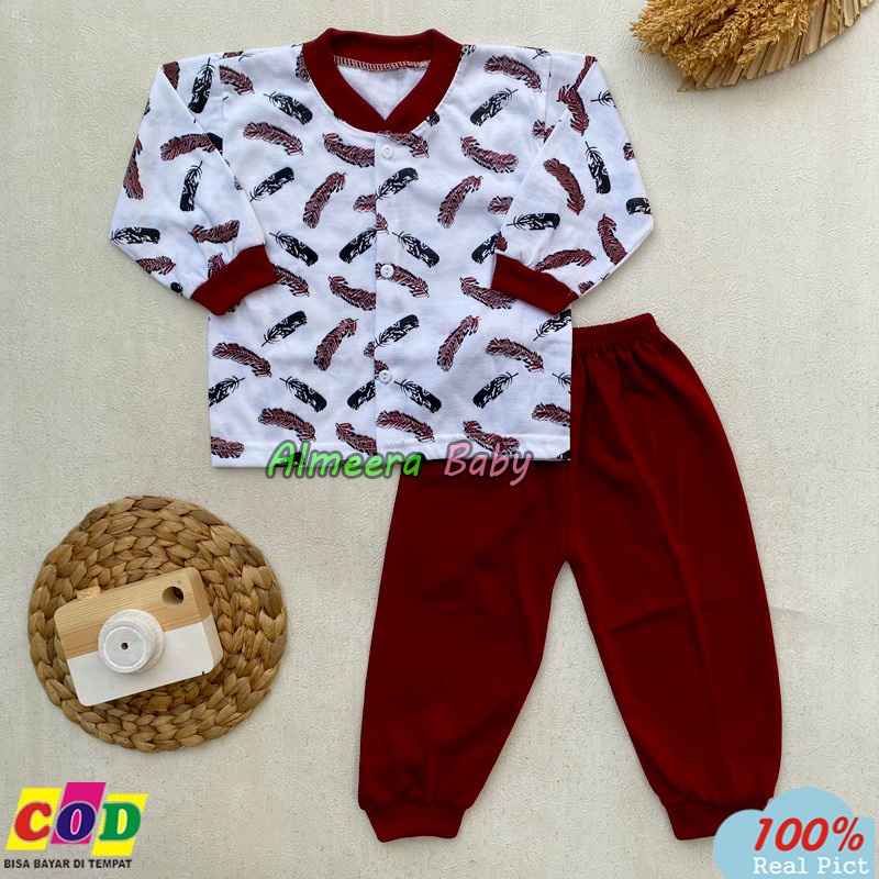 Setelan Baju Bayi Piyama Bayi Lengan Panjang Kancing Depan Laki Laki Perempuan Usia 3-12 Bulan Motif Bulu Ayam Almeera B