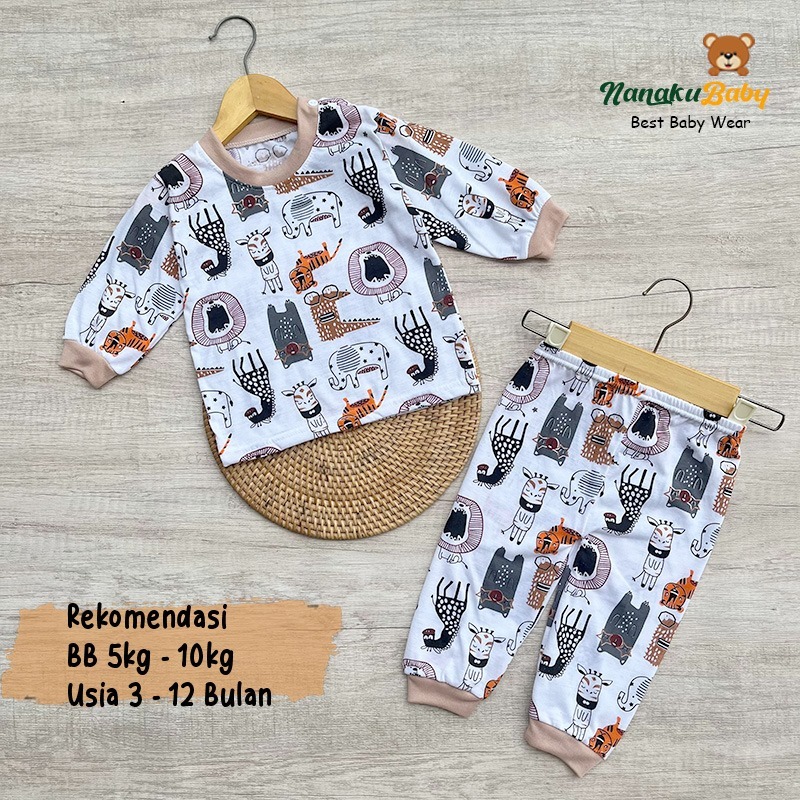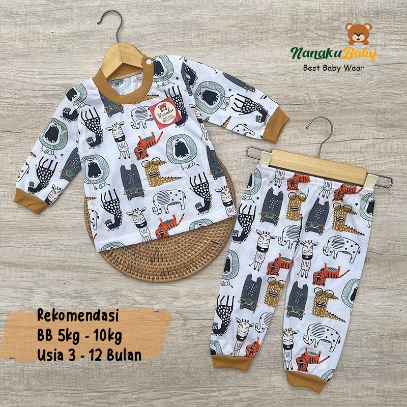 Setelan Baju Bayi Piyama Bayi Lengan Panjang Kancing Pundak Motif Jungle Land Usia 3-12 Bulan Anababy