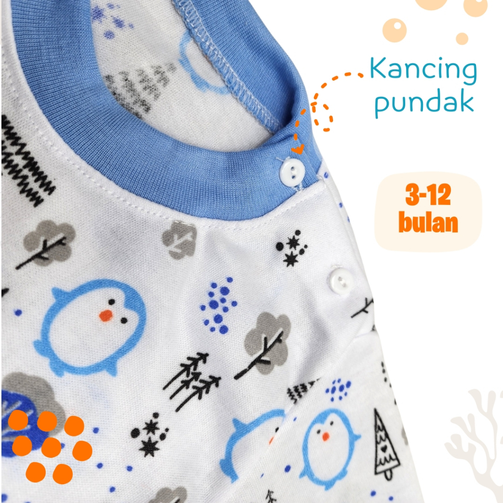 Setelan Baju Bayi Setelan Piyama Bayi Lengan Panjang Kancing Pundak Motif Penguin Usia 3-12 Bulan