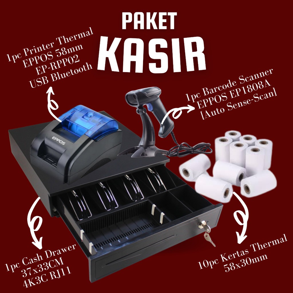 Paket Lengkap Alat Kasir Cash Drawer Printer Bluetooth Scanner Murah Berkualitas