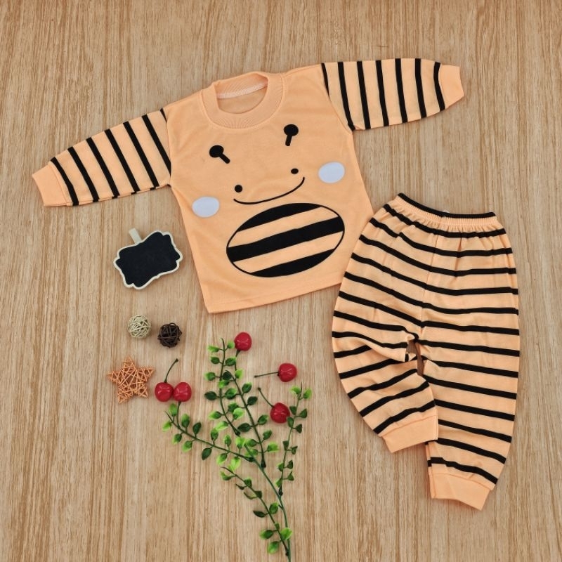 Pyama Bayi Setelan Baju Panjang Bayi Bahan Kaos / Piyama Baju Tidur Anak 0-12bulan Motif Bee Stelan Pyama Bayi