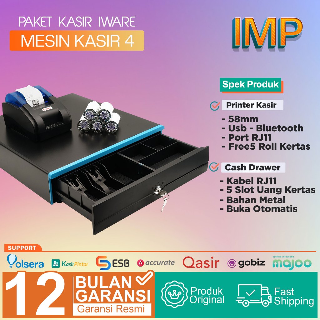 Paket Alat Mesin Kasir Android Cash Drawer 5 Slot - Printer Bluetooth 58mm - Free kertas 5 roll