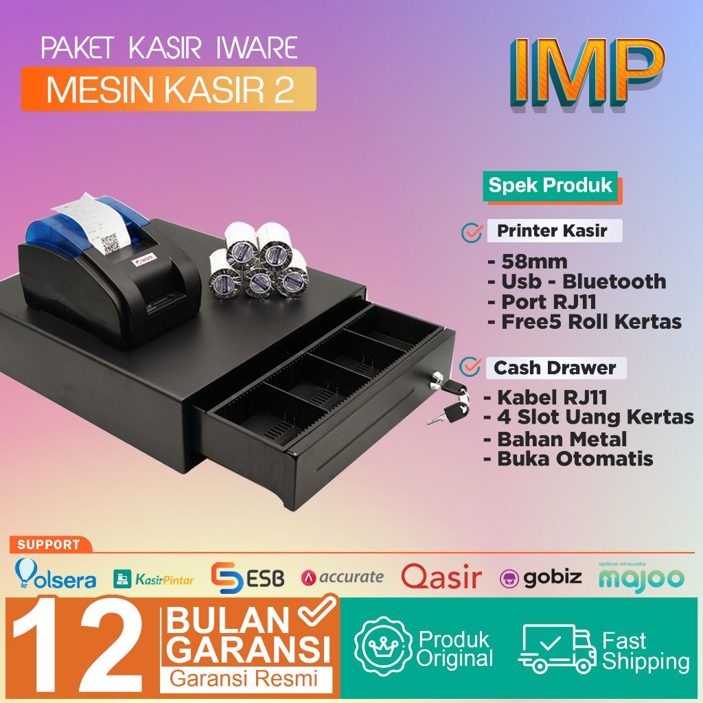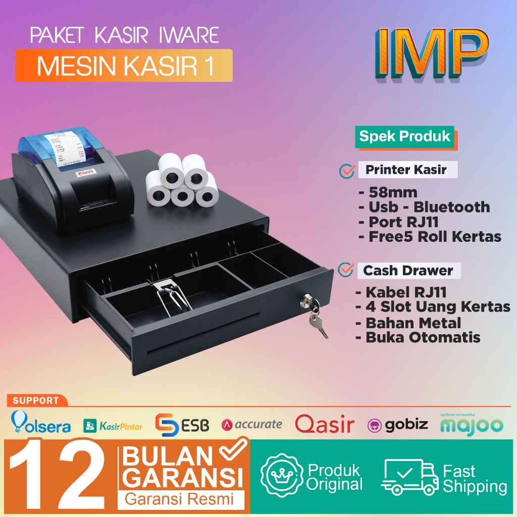 Paket Mesin Kasir Android Cash Drawer 4 Slot - Printer Bluetooth 58mm - Free Kertas 5 Roll