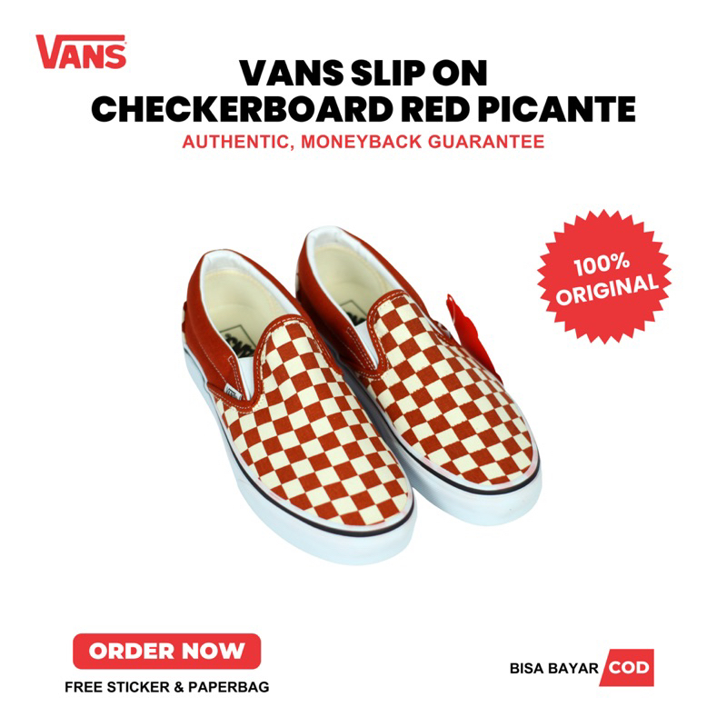 SEPATU VANS ORI - VANS SLIP ON Classic Red Picante 100% ORIGINAL