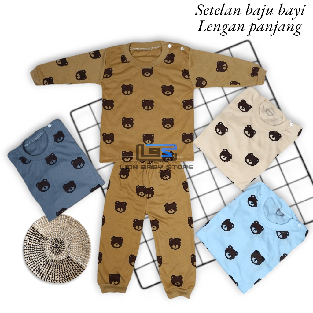 4 Setel Baju Bayi Setelan Panjang laki-laki Perempuan Piyama Bayi Motif kepala beruang 3-18 bulan