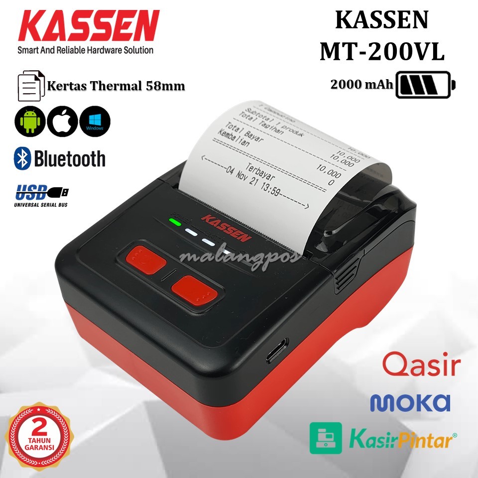 Kassen MT 200 MT200/MT200VL Printer Mini Thermal Bluetooth Support Qasir Mokapos