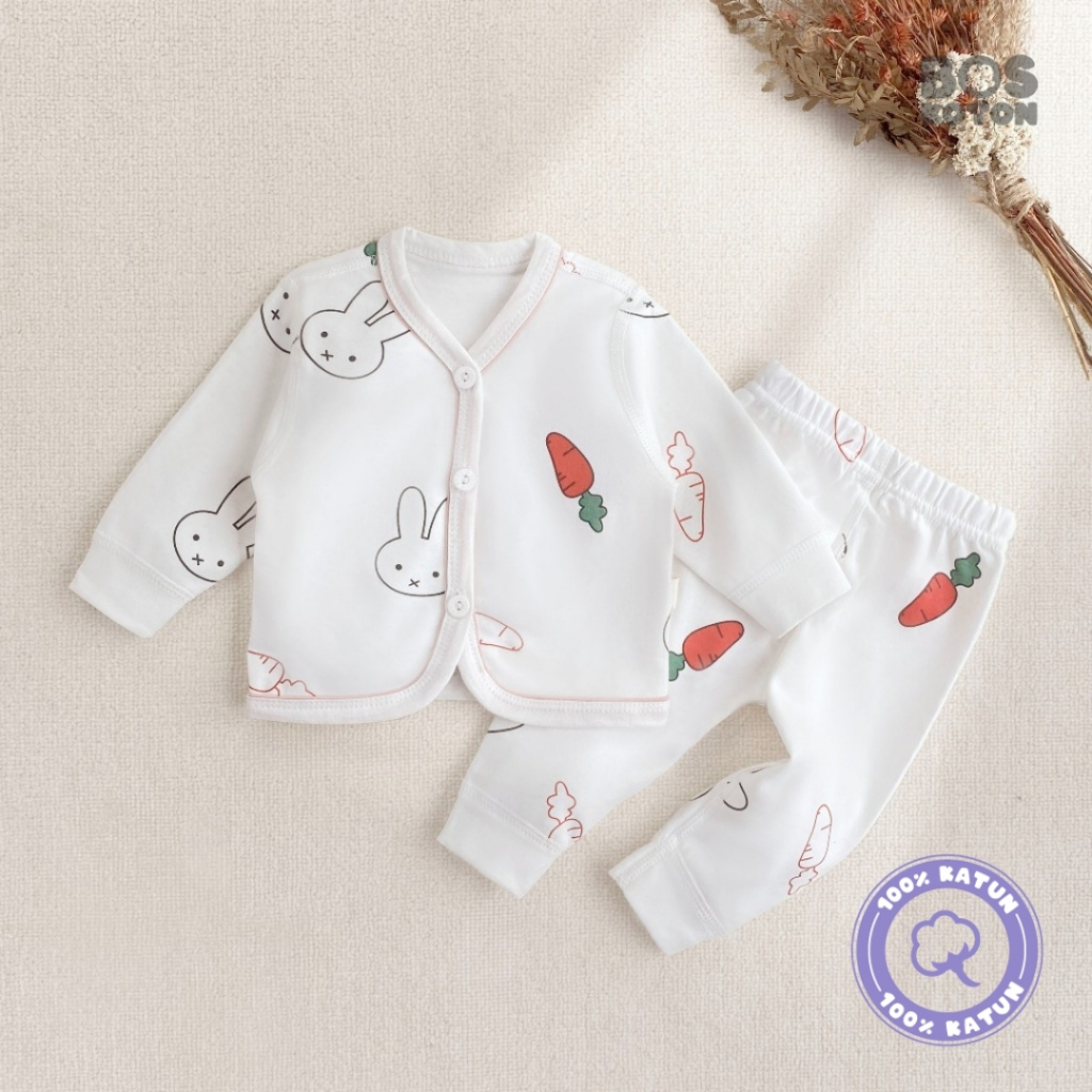 Boskoton Setelan Piyama Bayi Newborn Usia 0-12 Bulan Motif Kelinci Carrot Lengan Panjang