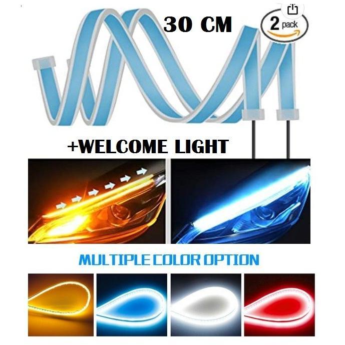 MEGA SALE LAMPU LED DRL ALIS SLIM FLEXIBLE 30CM TEMPEL SEIN RUNNING 2 MODE WARNA - BIRU BEST