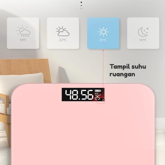 Timbangan Badan Digital 180KG Suhu Body Scale 26x26cm - 26X26CM PINK