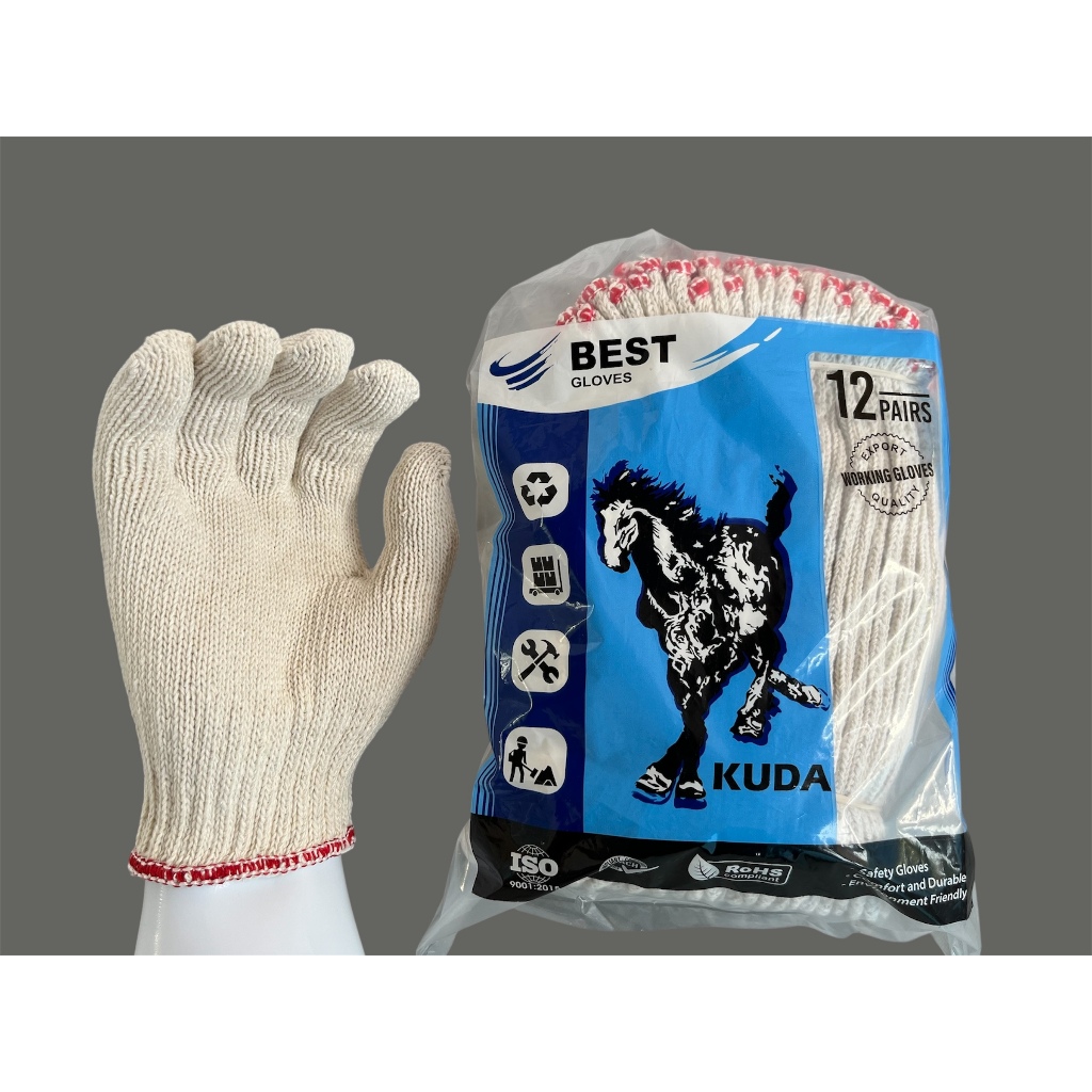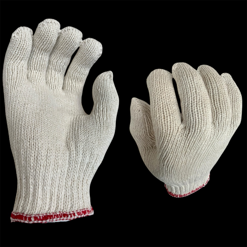 Sarung Tangan Rajut Benang 6 Putih List Merah Terang