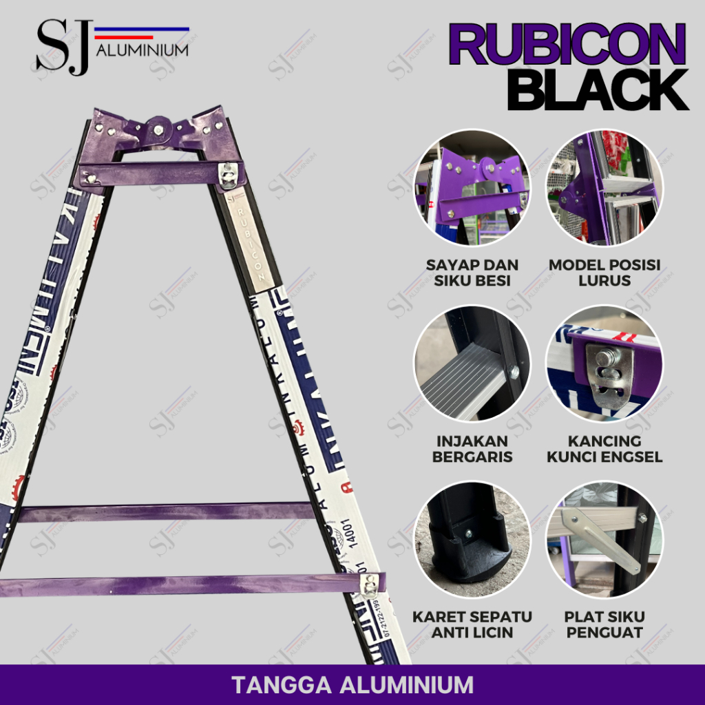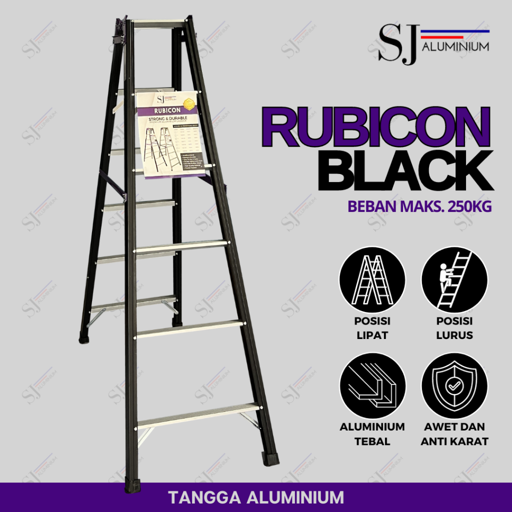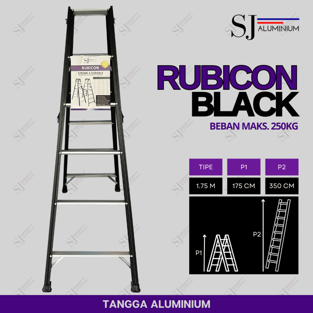 RUBICON BLACK - Tangga Aluminium Lipat Hitam Jumbo Aluminium Ladder Multifungsi - Tahan Beban 250 KG - 1,75 Meter / 175