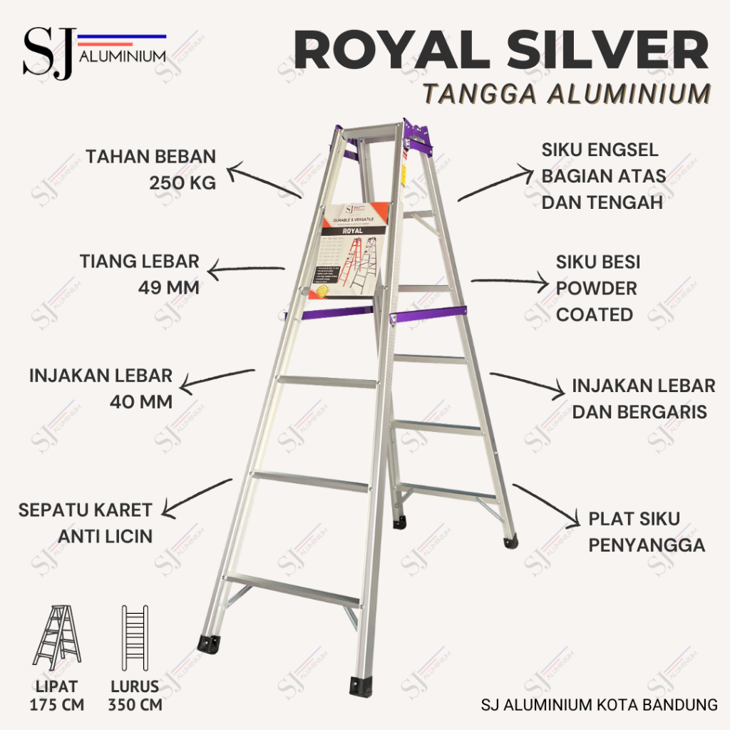 ROYAL SILVER - Tangga Aluminium Lipat Jumbo Aluminium Ladder Multifungsi - Tahan Beban 250 KG - 1,75 Meter / 175 CM