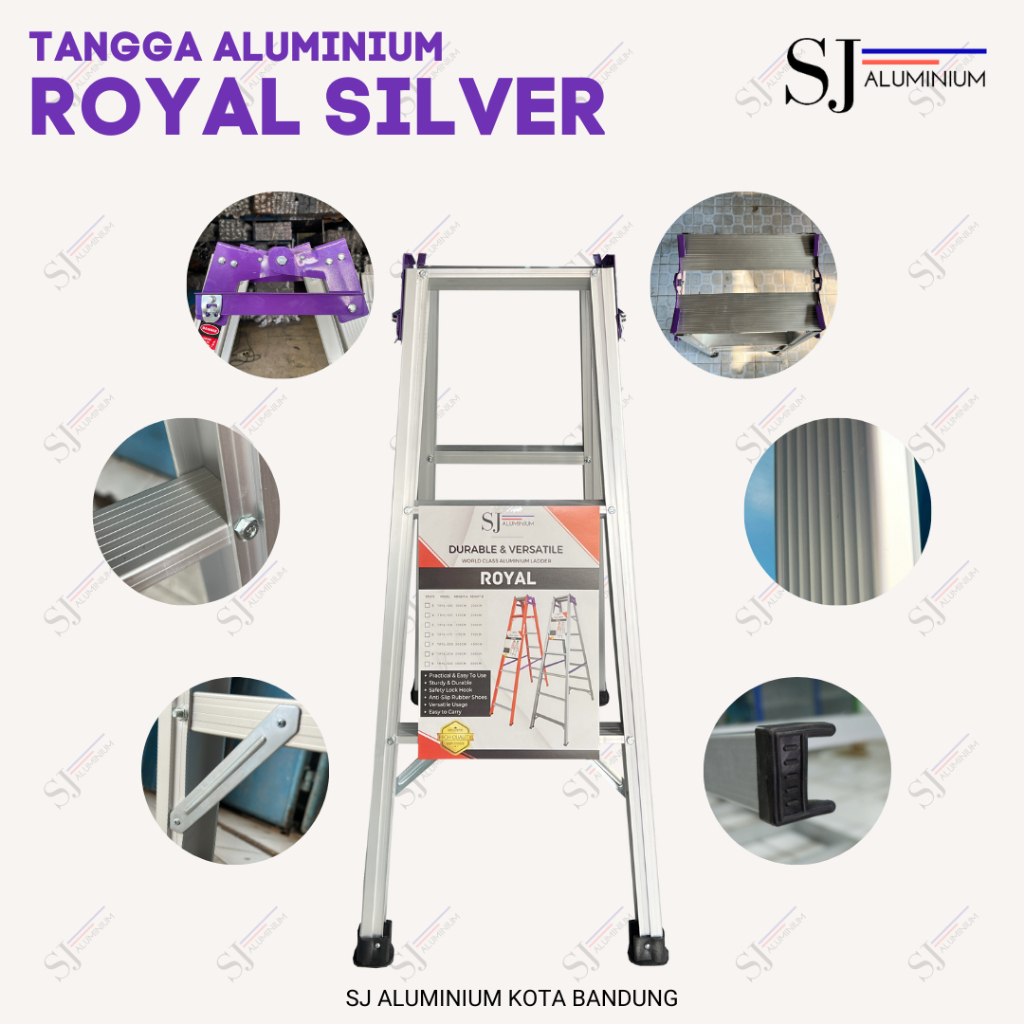 ROYAL SILVER - Tangga Aluminium Lipat Jumbo Aluminium Ladder Multifungsi - Tahan Beban 250 KG - 1 Meter / 100 CM
