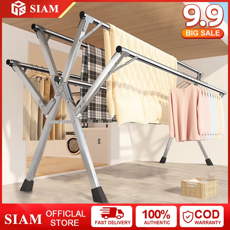 [PROMO] 【5 TiangRoda】Rak Pakaian Lantai Lipat Balkon Dalam Ruangan Rumah Tangga Balkon Dalam Ruangan Stainless Steel