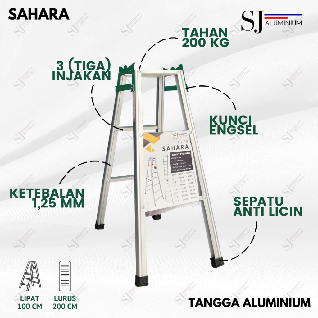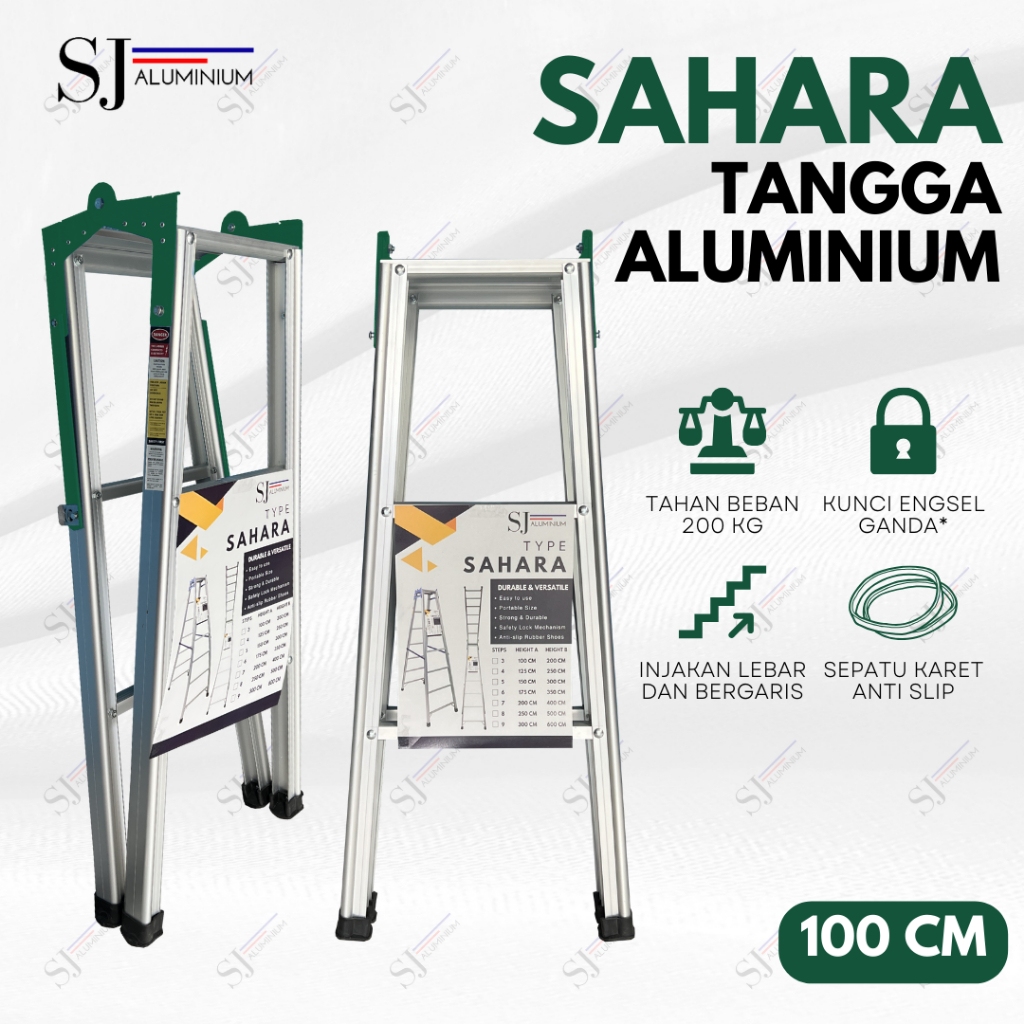 SAHARA - Tangga Lipat Aluminium / Tangga Lipat Jumbo Sahara Hijau 1 Meter [100 CM] - Tahan Beban 200KG
