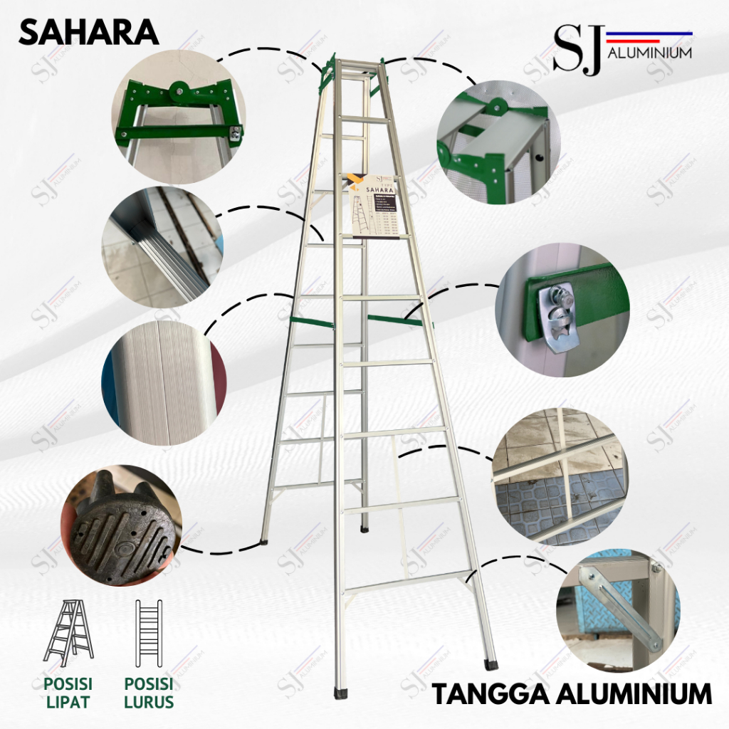 SAHARA - Tangga Lipat Aluminium / Tangga Lipat Jumbo Sahara Hijau 7 Ukuran - Tahan Beban 200KG